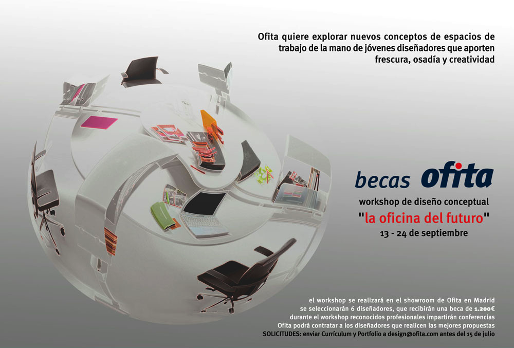 Ofita quere explotar conceptos de espazos de traballo da man de novos deseñadores que aporten frescura, ousadía e creatividade. Con este obxetivo, convoca as bolsas Ofita para novos deseñadores.