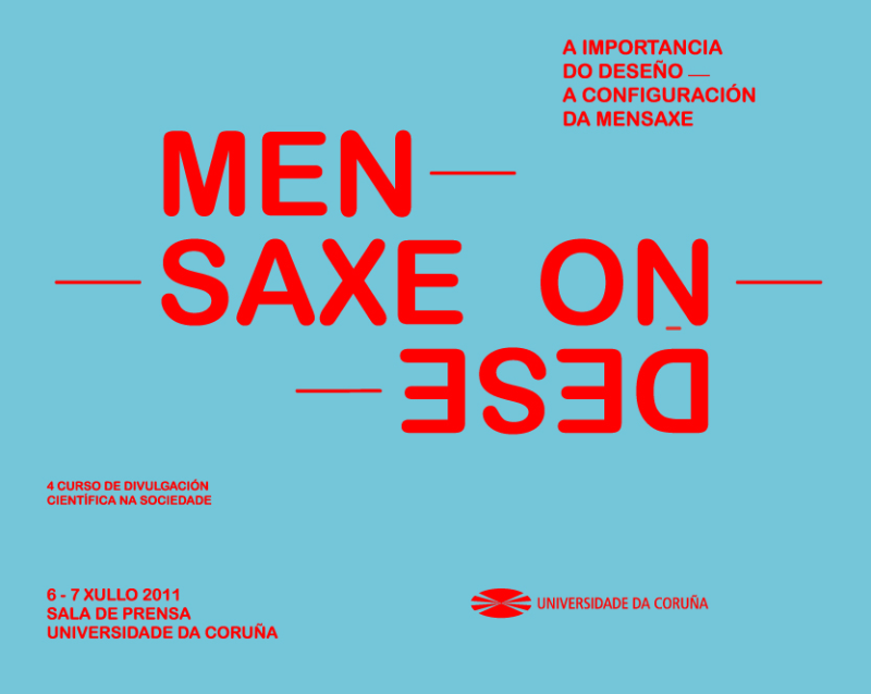 O programa do curso que se celebra o 6 e o 7 de xullo na sala de prensa da reitoría da UDC, arranca o venres pola mañá coas conferencias do vicerreitor de Cultura e Comunicación da UDC, Luís Caparrós, e de Manuela Mariño, deseñadora na Voz de Galicia. Xa pola tarde, desenvolverase unha mesa redonda que leva por título Transmisión da información a través do deseño e na que participarán o presidente da DAG e profesor de Deseño na UVigo, Marcos Dopico, a deseñadora gráfica, tamén membro da DAG, Uqui Permui, o vicedecano da Facultade de Belas Artes da Uvigo, Fernando Suárez, e Javier Barreira, account manager de Elogia. O curso clausurarase o sábado cun obradoiro de deseño impartido por outro socio da DAG, neste caso, Daniel Bembibre, e que durará todo o día. Toda a información e matrícula, aquí.