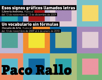 A inauguración das dúas exposicións que levan por título "Eses signos gráficos chamados letras" e "Un vocabulario sen fórmulas" terá lugar o próximo venres 13 de novembro ás 19.00 h e ás 20.00 h na libraría Anónima e na Escola de Arte de Huesca, respectivamente.