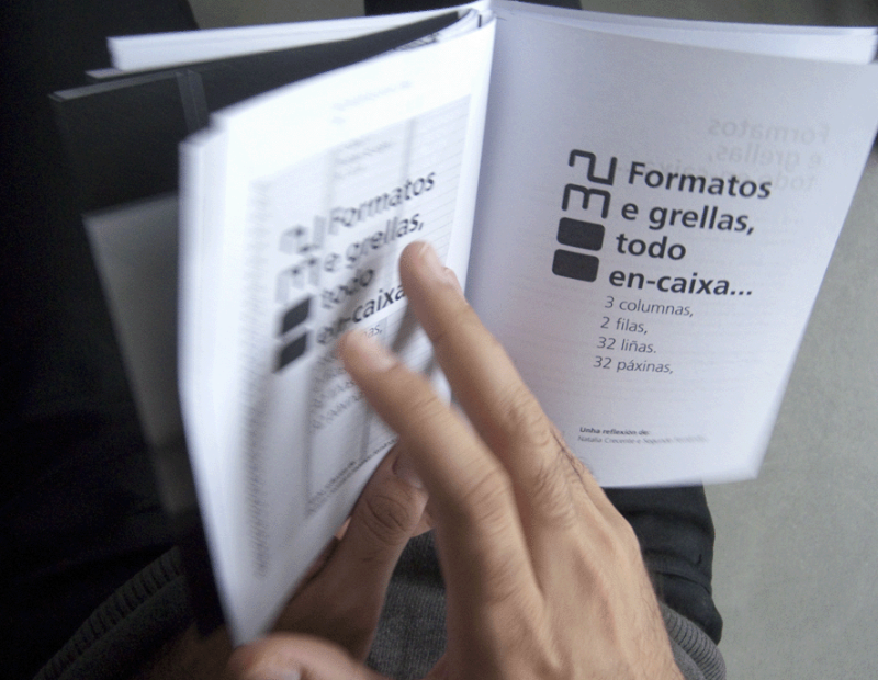 Esta primeira edición on-line de 32 páxinas inclúe: “Historias tipográficas” de Óscar Otero, “Tango corazón de papel” de Gisela Ahumada, unha conversa entre Uqui Permui e Martiño Villaver de “Inspirar… expirar”, “Formatos e grellas, todo en-caixa” de Natalia Crecente e Segundo Fernández e “Replica, unha tipografía do século XXI” de Marcos Dopico A portada é unha colaxe formada con algunhas versións da gráfica utilizada polo boletín mensual da cultura galega, medio de expresión entre 1920 e 1935 do grupo Nós.